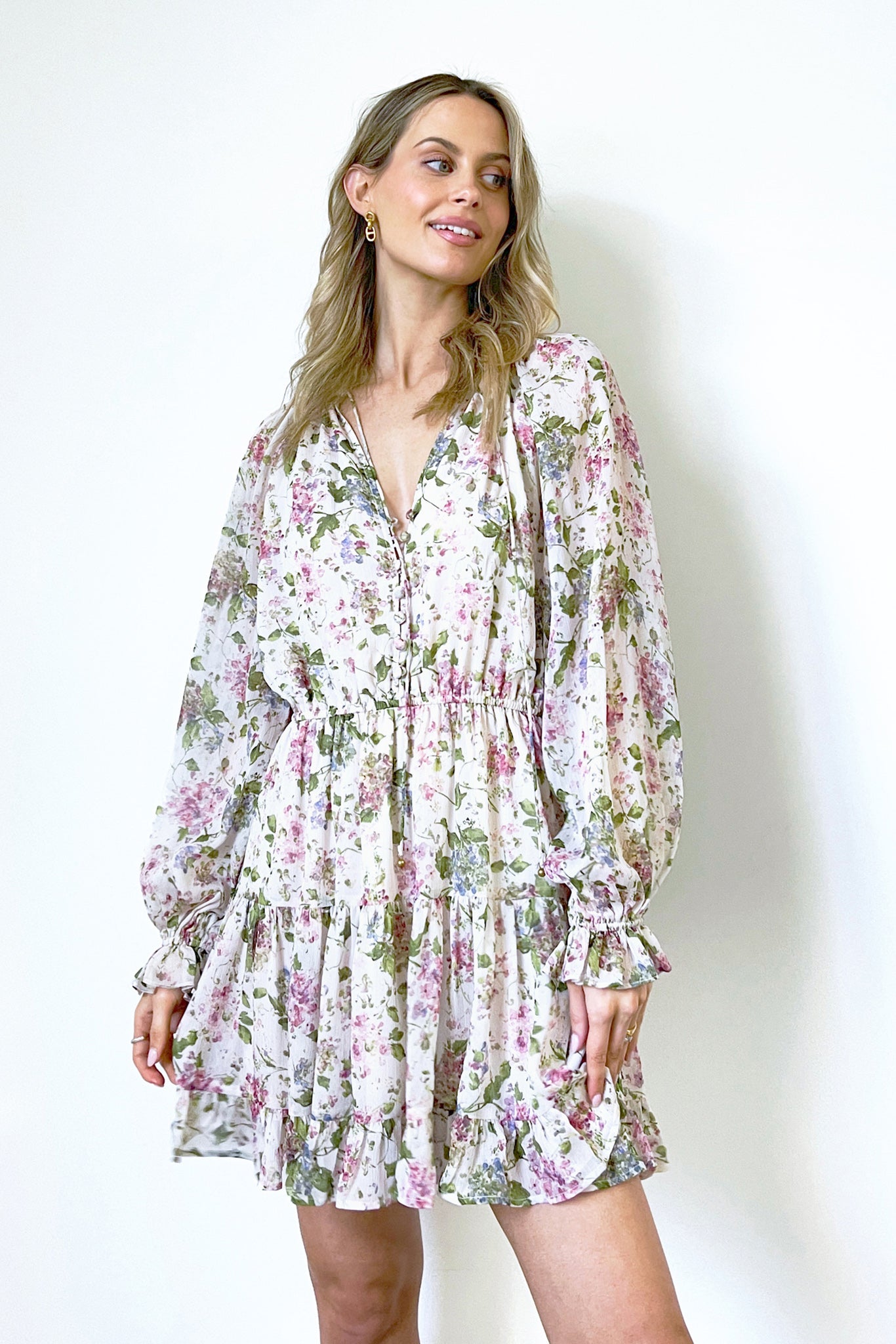 Introducing our enchanting Labrena Dress, a delightful fusion of style and comfort that will elevate your fashion game to new heights. Designed with an eye for detail, this dress boasts a mesmerizing floral print that blooms gracefully across the fabric, infusing a sense of freshness and charm into your look in this Lakeyo piece.
