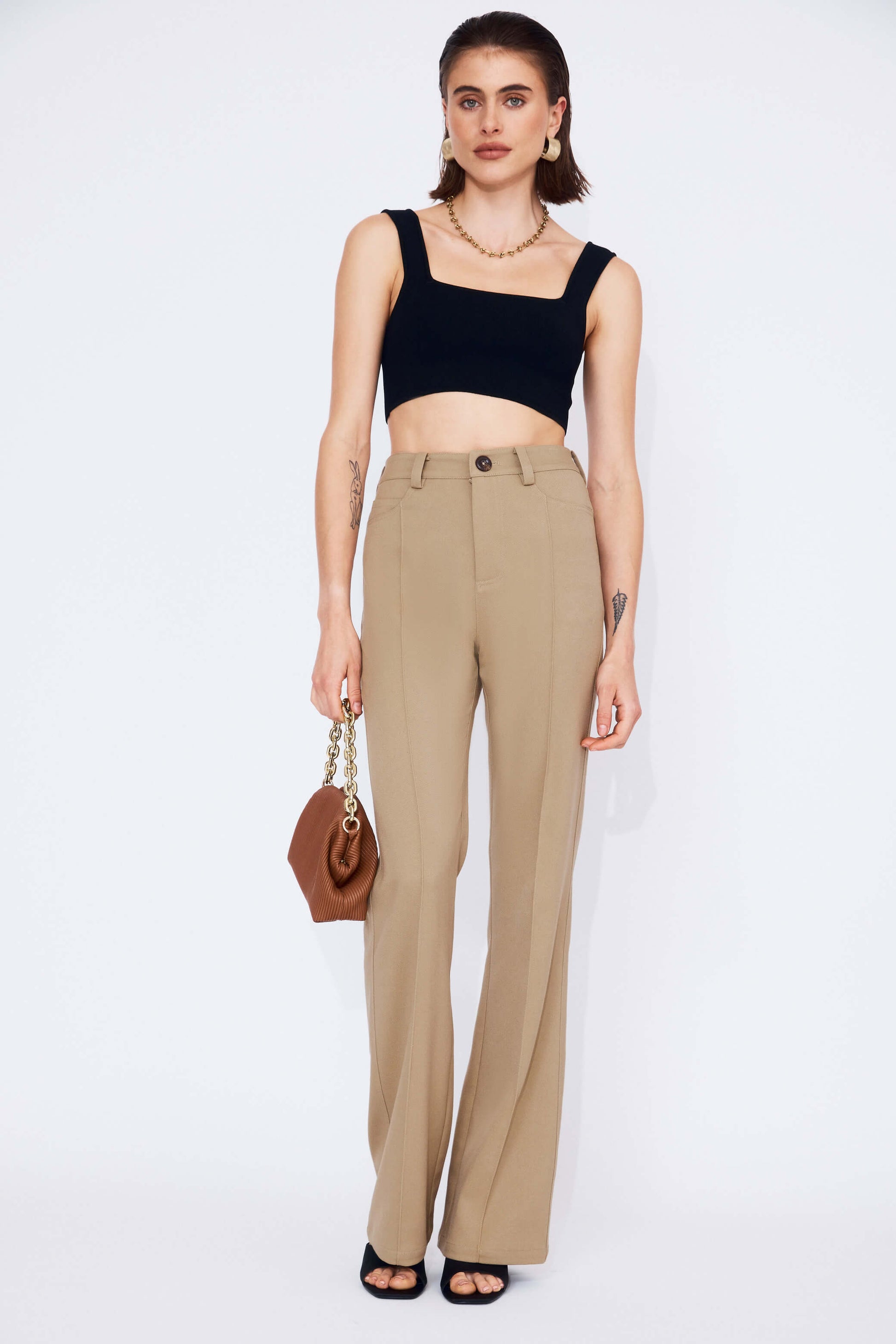 Going from office to post-work drinks? These tailored Sylvia pants that are introduced in a flared silhouette are a must-have in your closet. The taupe brown hue is great for mixing and matching too.